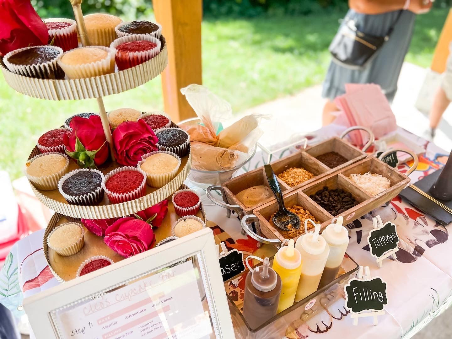 - A beautifully arranged cupcake station (table, display setup, and serving essentials)